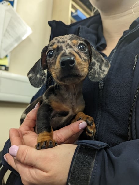The six- week-old dachshund was cared for by a vet before he was taken into the care of the RSPCA Cornwall Branch for foster care before he was old enough to be rehomed.