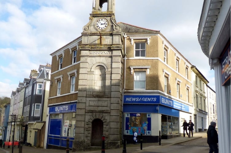 The landmark clock on Turret House, at the junction of Fore Street and Honey Street, hasn’t worked for a number of months.