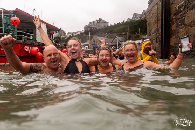 BRAA-AVE people took part in the traditional dip in Newquay Harbour on New Year’s Day to raise money for charity.