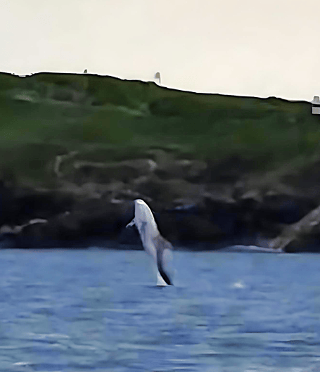 “What we believe is that the Risso’s dolphin that jumped out of the water was Maurice and the Risso’s that we saw at the headland was gramps Ronald Jeffries who had come to collect Maurice before waving goodbye.