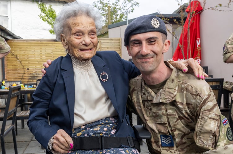 A FORMER servicewoman from Camborne who played a vital role during World War II, plotting the positions of enemy aircraft, was given a surprise during her 102nd birthday celebrations.