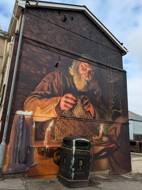 The artwork featuring a fisherman tending to his nets has been created at the junction of Fore Street and Sydney Road by talented artist Elle Koziupa as part of the forthcoming Be Newquay Festival in November.