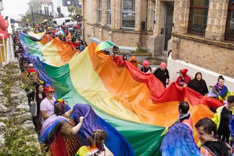 Dozens of people took part in the vibrant procession carrying the world’s largest pride flag from Beach Road to the Killacourt waving brightly coloured banners and umbrellas to support, celebrate and raise awareness.