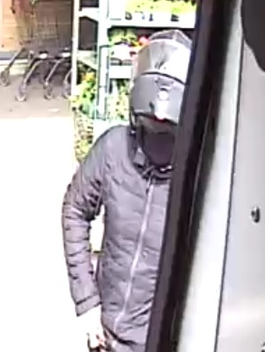 The moped is described as a small and black with a black and red box on the back. The man is described as being over 6ft tall and he was wearing black clothing, a balaclava, and a black bike helmet.