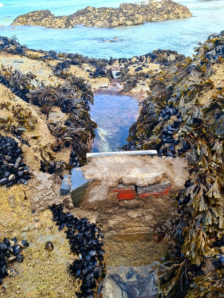 Leah said: “I was walking my dog around to Whipsiderry on the low tide when I found that someone had built a concrete dam in the natural drainage channel of the mermaid pool, completely blocking it.