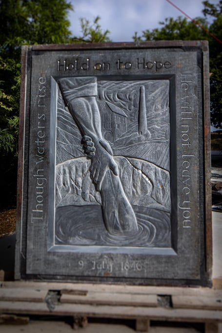 A setting and blessing ceremony will take place for the slate carving, which measures 7ft by 5ft and weighs over a tonne.