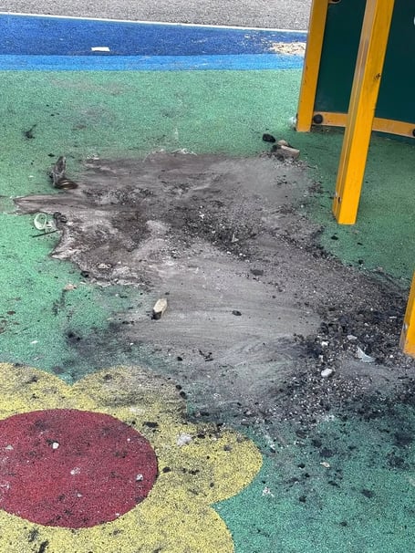 Fires were lit inside the tube slide and on the safety flooring at the Doorstep Green play park at Treloggan. Rubbish as well as food was also strewn around.
