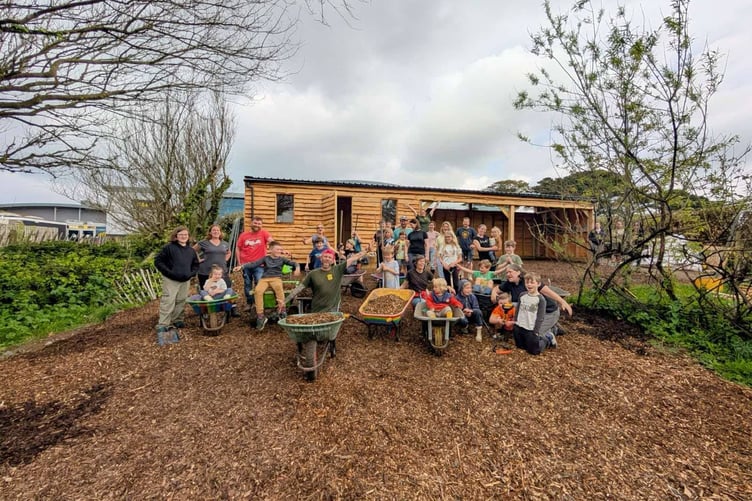 Around 30 people gave a helping hand moving tonnes of woodchip outside the new Imagine Outdoors Together CICs den at Newquay Orchard, which helps adults and children get outside and learn new skills.