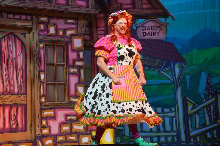 The Cornish contingent - Colin Leggo as Goosey, Truronian Charlotte Rutherfoord as Smart Simone and Gareth Cooper as ‘Allo ‘Allo style Frenchman Harri Co’vert - were just brilliant, pantomime cow Jagga simply adorable and the giant a jaw-dropping feat of puppetry.