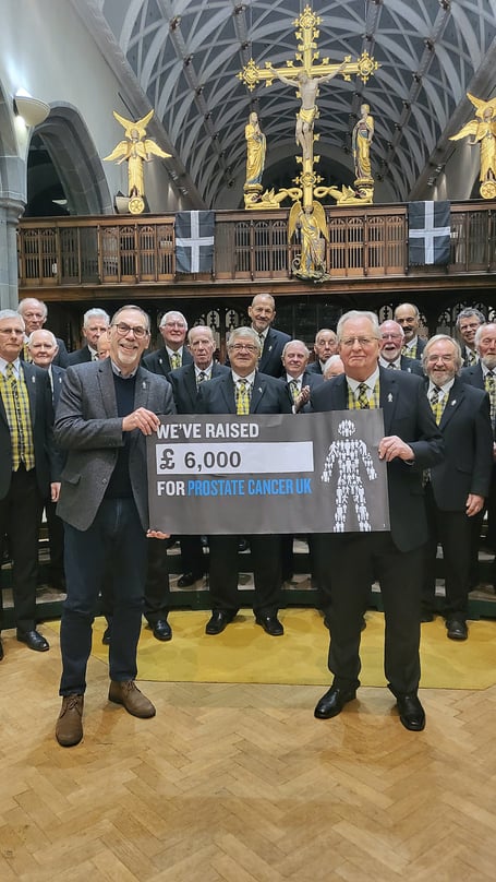 “The icing on this anniversary cake was provided by two things. “Firstly, the number of former members and associates of the choir who were able to attend and secondly, the presentation of a cheque to Phil Tearle representing Prostate Cancer UK, the choir’s chosen charity for the year.